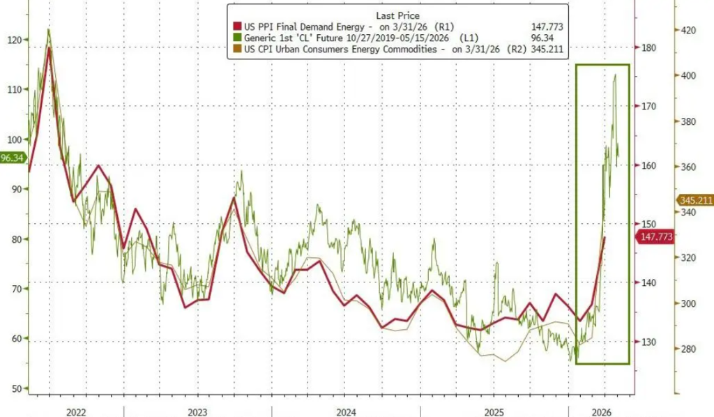 据彭博数据显示,整体通胀数字中能源成本的贡献虽然突出,但并未如此前预期般"失控"。这与此前美国3月CPI数据呈现的相似规律相互印证——能源冲击的实际传导幅度再次低于市场的悲观预判。对投资者而言,短期内围绕能源通胀的恐慌情绪或有所消散。